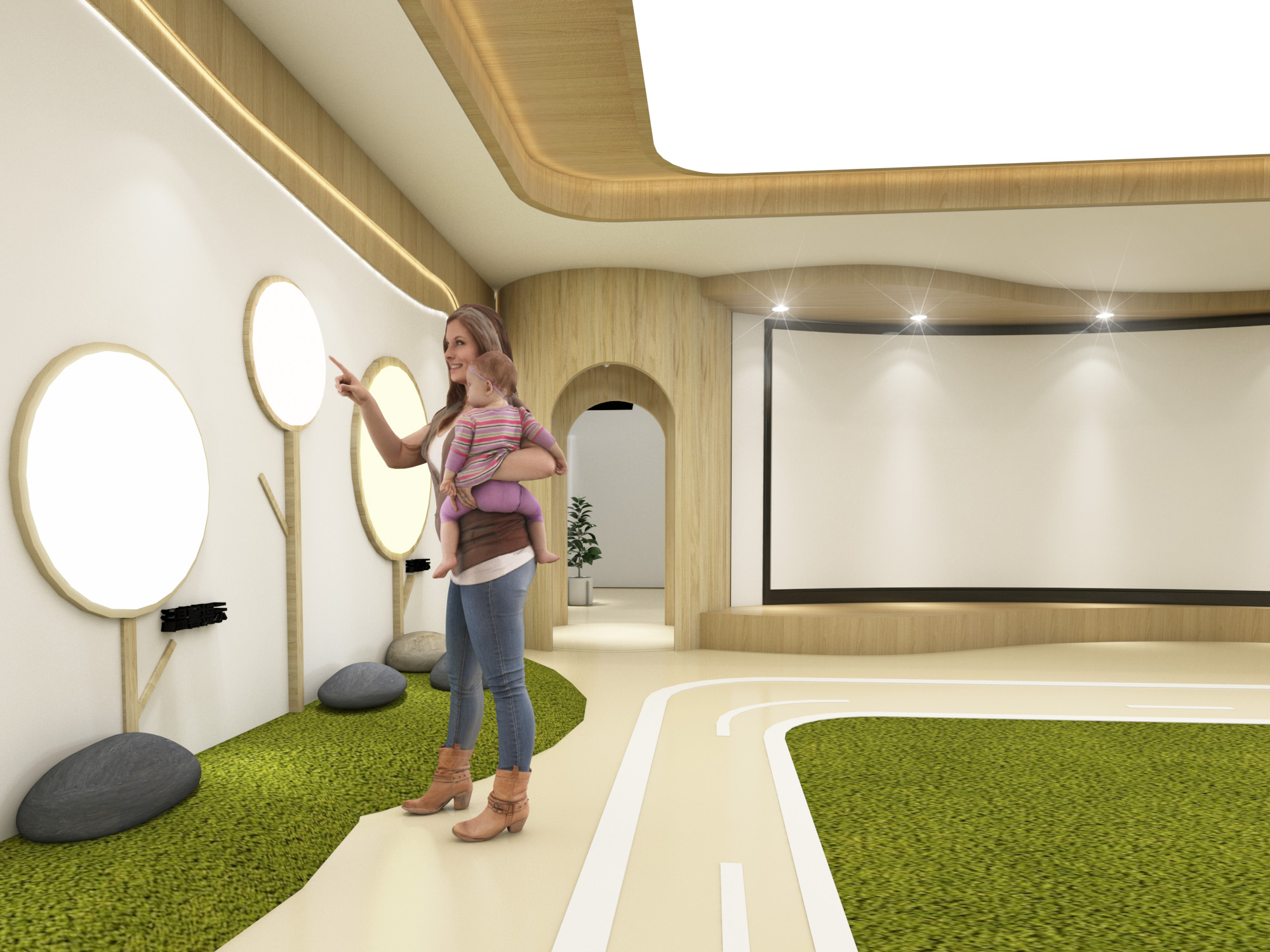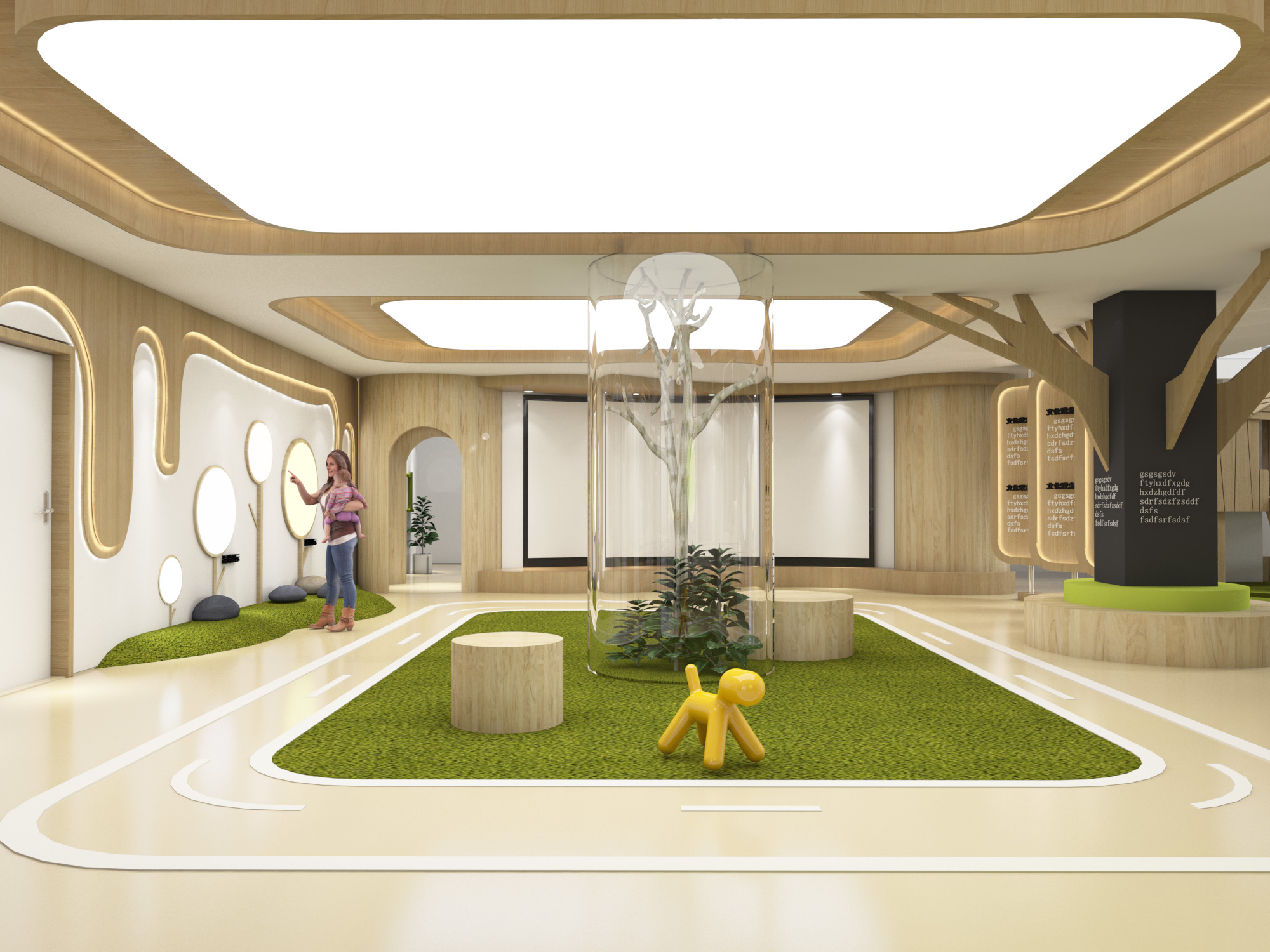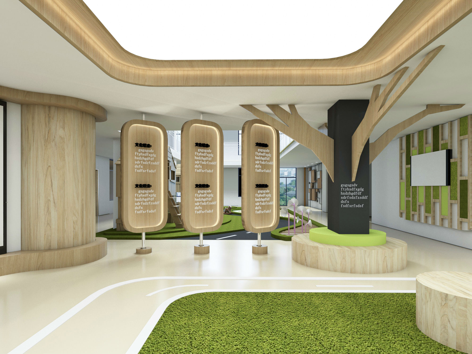 整个空间打造成让孩子们、自发地区探 索、发掘和创造属于自己趣味空间和生动体